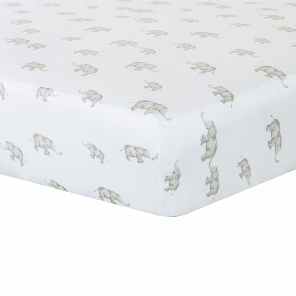 Living Textiles | Cotton Jersey Fitted Sheet | Grey Elephant