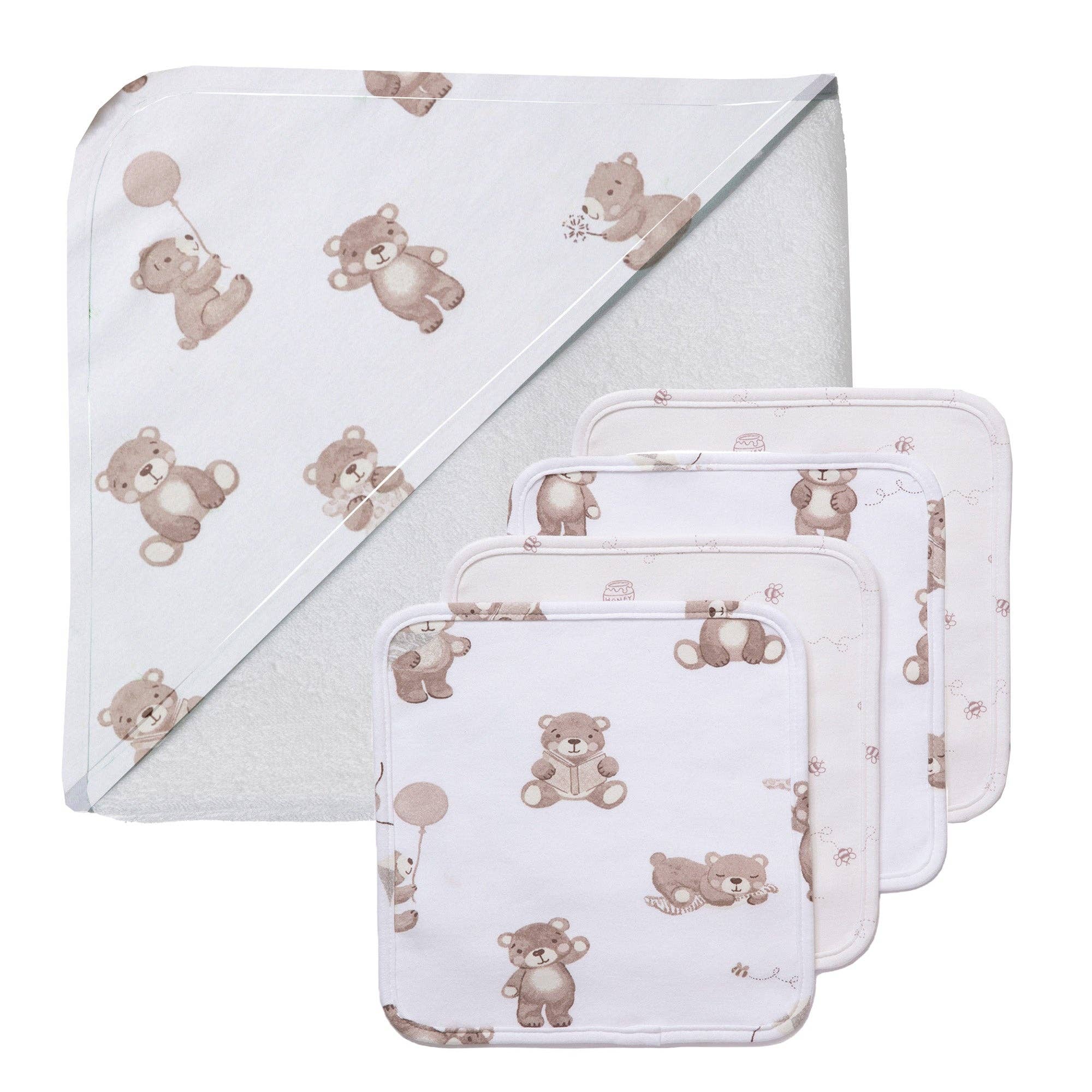 Living Textiles | 5pc 100% Cotton Bath Gift Set | Cuddly Bear