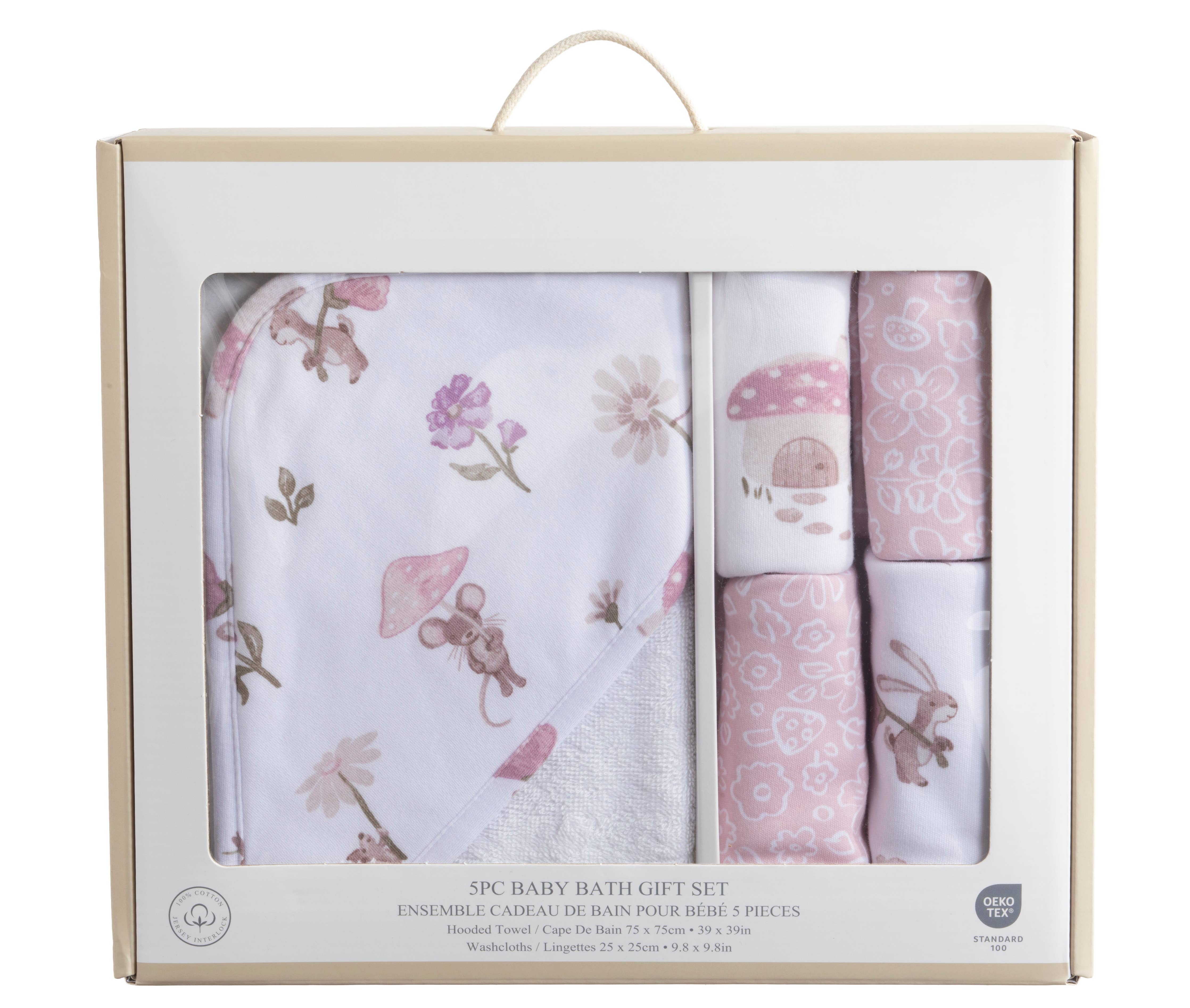 Living Textiles | 5pc 100% Cotton Bath Gift Set | Mushroom House